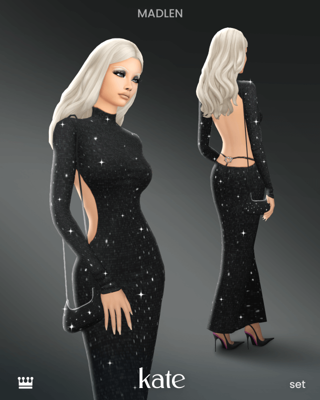 Kate Set Hey everyone! Super excited to share the Kate Set with you all today. For this set, I wanted to create something glamorous but with that edgy, late 90s/early 2000s energy. The whole look is heavily inspired by Gucci! The set includes a dress, a bag and an eyeshadow