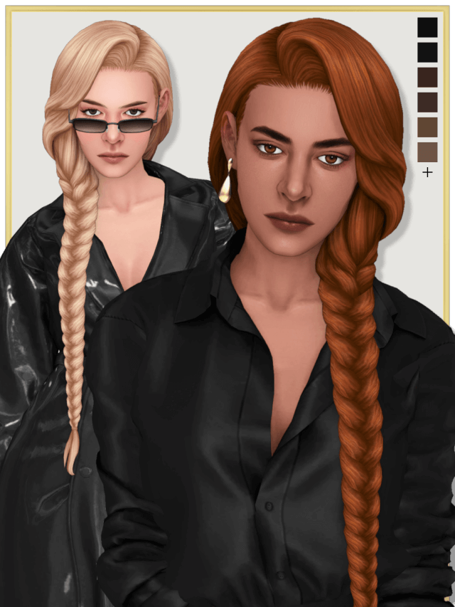 LIRA | female hair (i’ve nothing clever to say 🦐) Maxis palette (24 swatches) BGC hat compatible polycount: 5k two standalone versions: with the braid down the left shoulder (V1) & down the right (V2) P.S. you can find the hairline used in the preview here