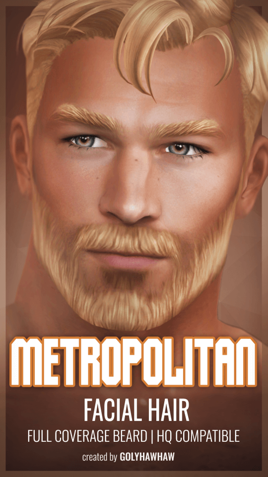 Metropolitan Facial Hair Greetings everyone. Here is a bog-standard medium length beard for your sims! The beard shape reminds me of a city-goer hence the given name. Download and other information under the cut.