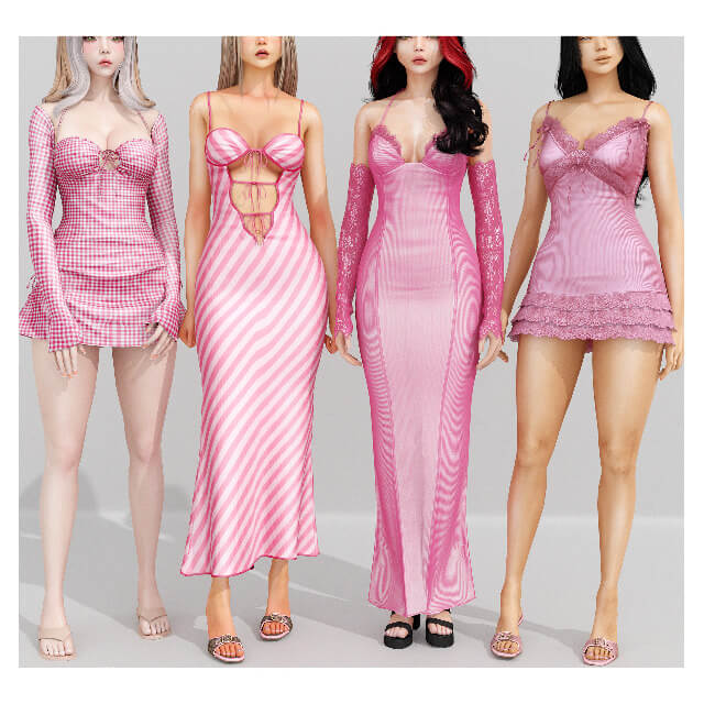 Pink Me Up Dresses Collection Glenda Long Dress – 102 Swatches New mesh Base game All lods compatible HQ Custom thumbnail! Body – Category