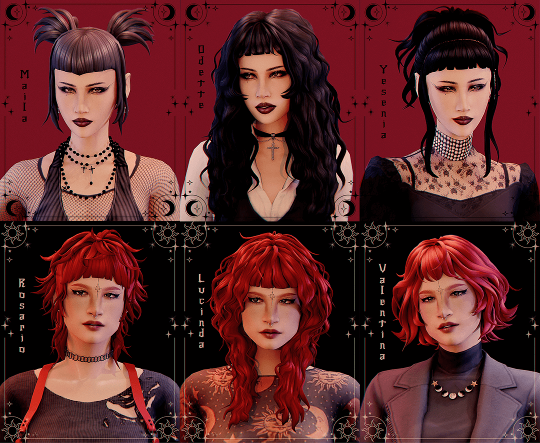 a bit random, but i guess the common theme here is micro bangs. suitable for your vampires and darkly-inclined simmies (or whoever really). most of these were wips from last year and the way i make hairs has changed a bit since, but thought i’d still share them. original post BGC feminine frame 24 EA swatches + 17 extras teen-elder hat compatible all LODS, all maps