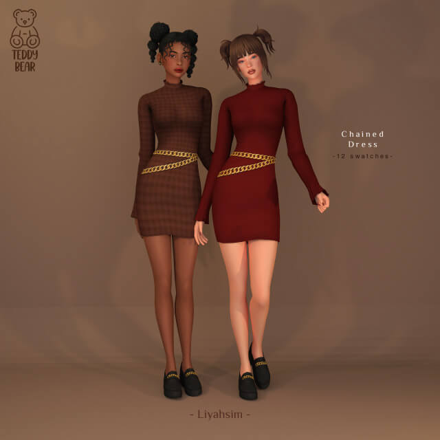 Teddy Bear Collection – Chained dress + Earmuffs his is the last outfit from the collection, is HQ compatible and can be found in the Full Body section of the CAS. The earmuffs are an ACC and can be found in the HATS section. Chained Dress – 12 swatches Earmuffs – 5 swatches