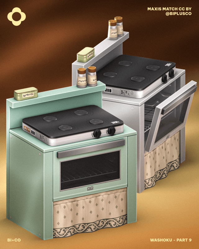 Washoku – Part 9 For the 9th, and final installment of our Washoku collection, we are introducing the All-in-One Induction Stove/Oven. In many urban Japanese homes, space is at a premium, leading to the creation of hybrid appliances that do the work of three. This set provides your Sims with a high-tech cooking experience that fits into a single, compact footprint, perfectly matched to the modular frames from Part 5.